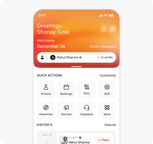 Pay dues, manage visitors, raise complaints, and get updates.